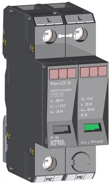 Prepäťová ochrana KIWA POm I LCF 25 280V/25kADODANIE TOVARU DO 5 PRACOVNÝCH DNÍ,SKLADOM U DODÁVATEĽA= 10 ks106,60 EUR/ ks86,67 EUR bez DPH